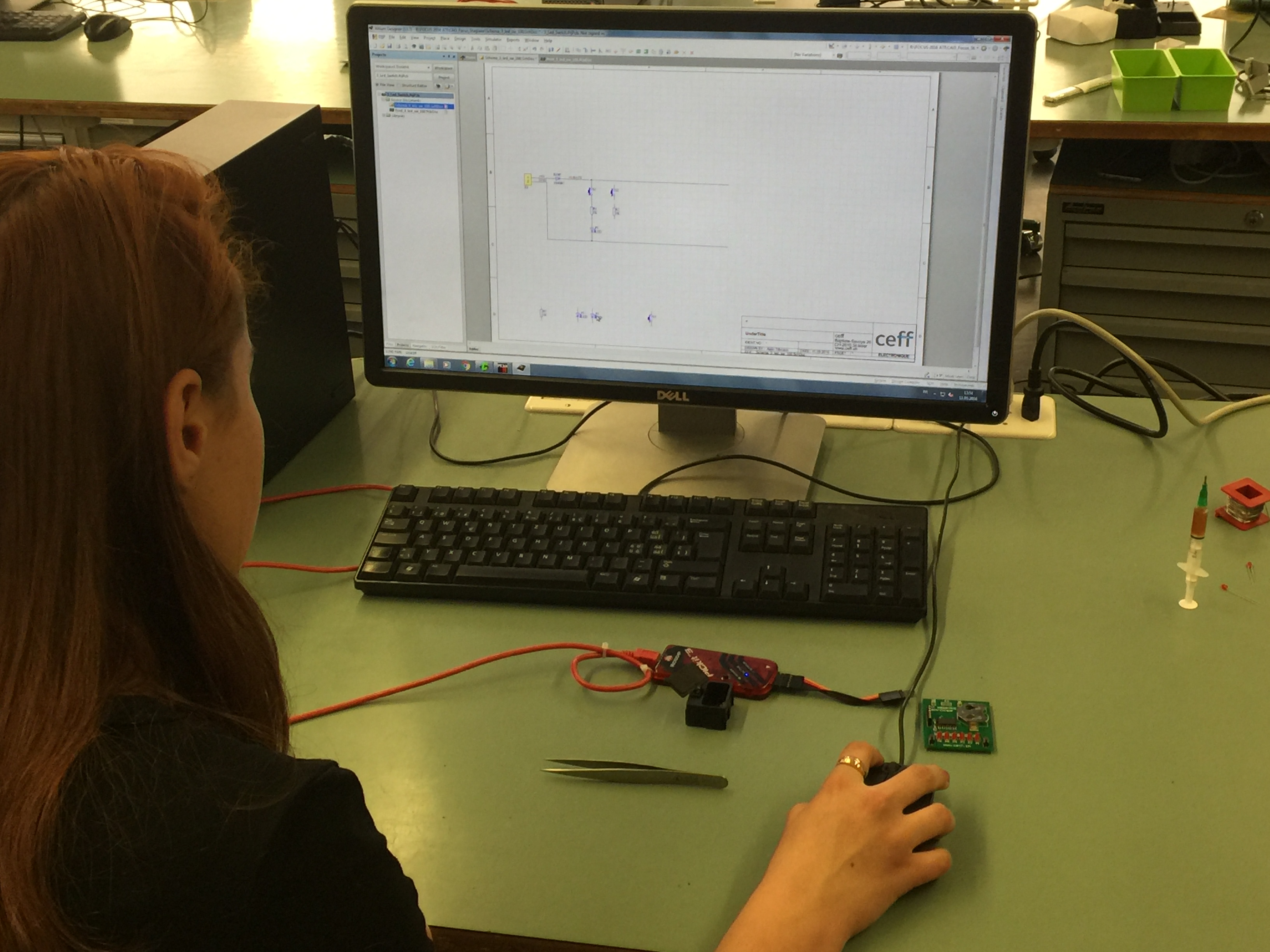 Pendant la journée focus technique tu auras l'occasion de faire de la soudure ainsi que de faire le design de petits circuits électroniques.